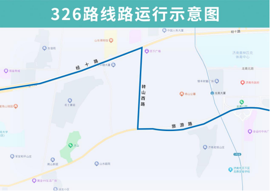 326路恢复后开往燕山立交桥北方向沿旅游路向西至转山西路向北恢复原线,恢复原转山西路旅游路(路东)、转山西路北口(路东)站点,撤销临时增设的下井庄园(路东)站点;开往西营方向线路不变。