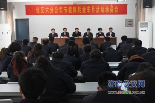 济南公交官网讯 2月28日上午,六分公司召开节能降耗爱车月活动动员大会。总公司副总经理石军出席会议并讲话。六分公司班子成员、车队长、部门负责人、机务员及职工代表共90人参加大会。会议由公司党委书记段军主持。
