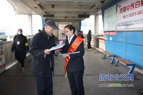 济南公交官网讯 3月5日是毛泽东等老一辈无产阶级革命家为雷锋同志题词"向雷锋同志学习"51周年纪念日。为弘扬和培育新时代雷锋精神,进一步推动站台微笑服务的深入开展,促进站台精神文明建设和良好道德风尚的形成,济南公交七分公司团委结合站台服务工作,开展向雷锋同志学习的便民服务活动。