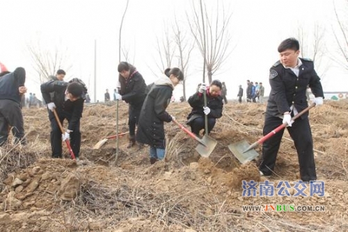 济南公交官网讯 在第36个全民义务植树节到来之际,3月9日上午,济南公交七分公司站务部高星级站务员们参加了由团市委组织的“生态济南 青年争先”青少年植树活动,与全市300多名团员青年一起种下绿色,种下希望。