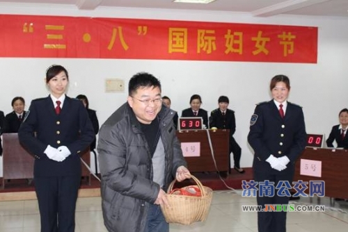 济南公交官网讯 3月7日,三公司工会在一队职工之家活动室举办“庆三八女职工知识竞赛”。此次比赛受到广大职工的大力支持和总公司领导的高度关注,总公司工会主席张栩、副主席尹萍、企业文化部赵东云参加了比赛并担任评委。三分公司工会主席蒋有德及各分会主席、驾驶员参加了比赛。