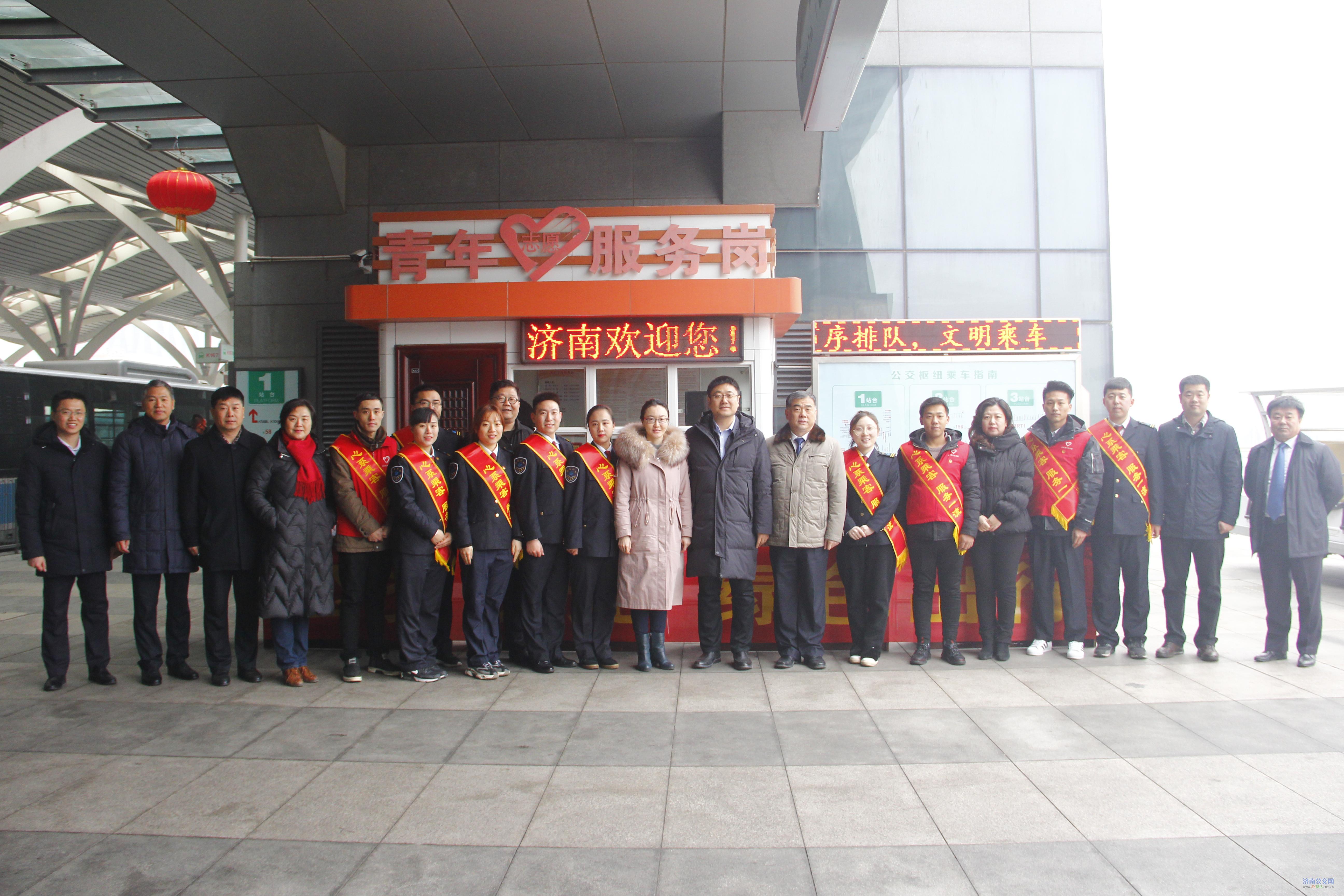 济南公交官网讯 1月19日上午,团省委副书记李梦遥、志愿者行动指导中心主任刘北雪、副主任陈宝军、团市委副书记孔庆松一行来到济南西站公交枢纽慰问坚守一线的公交志愿者,集团党委副书记、工会主席石绍滕、组织人事部部长李文成、团委书记田思民陪同慰问。
