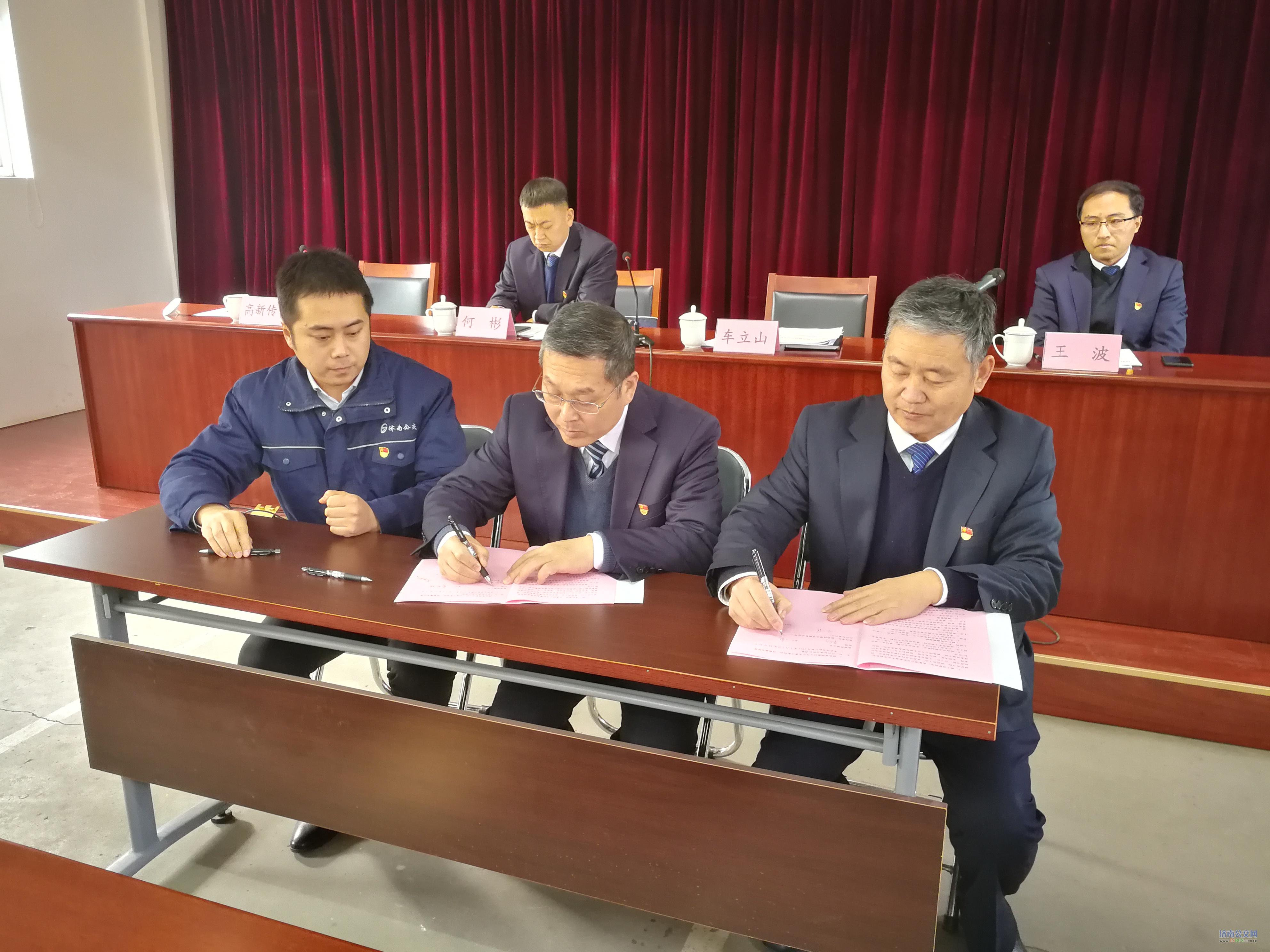 公司经理车立山、党委书记高新传分别与基层分公司和机关部室代表签订《2020年工作目标责任书》