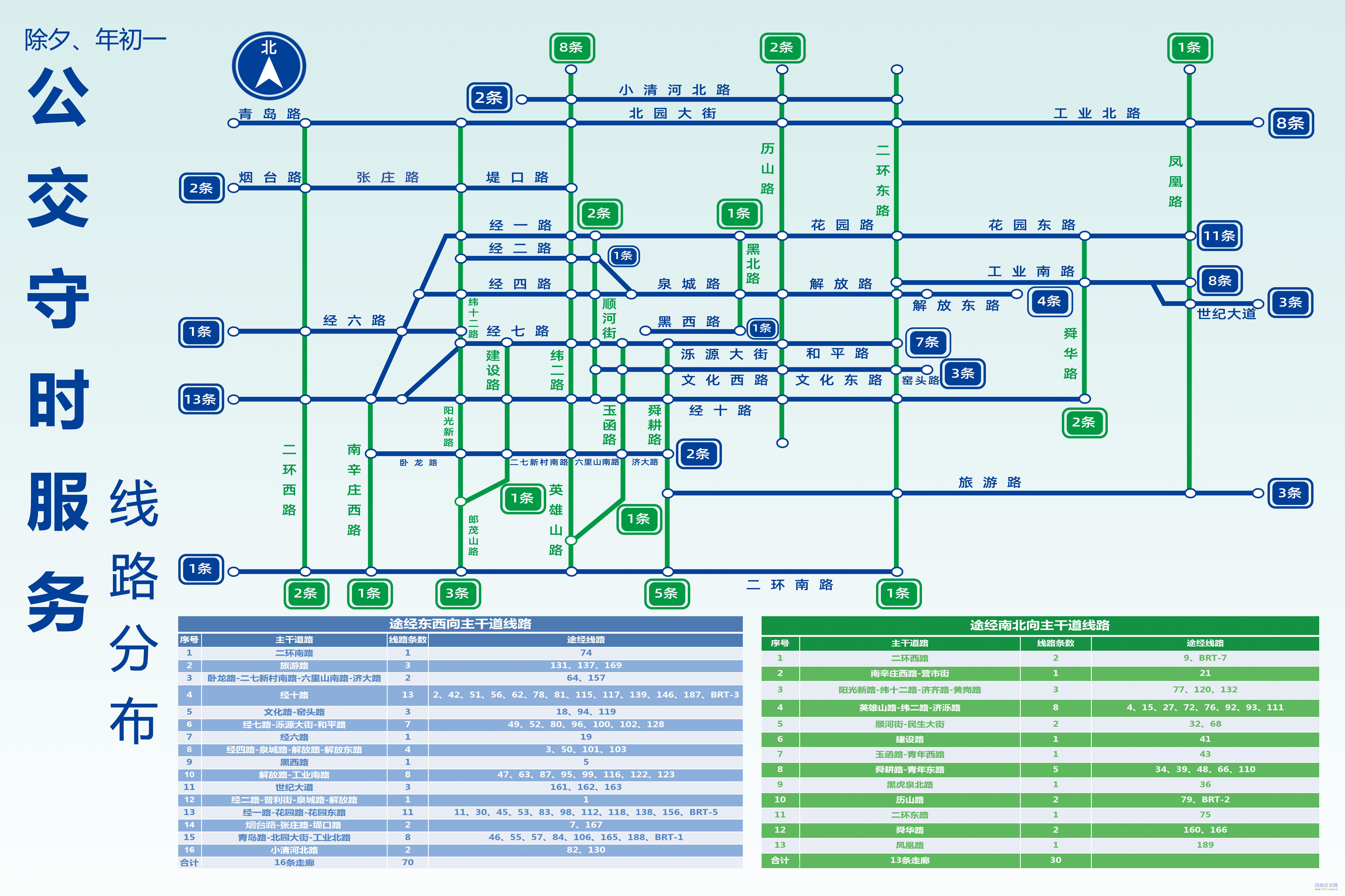除夕和大年初一,济南公交将在100条公交线路上推出“守时公交”服务,公布发车间隔,让市民乘公交出行更有计划。