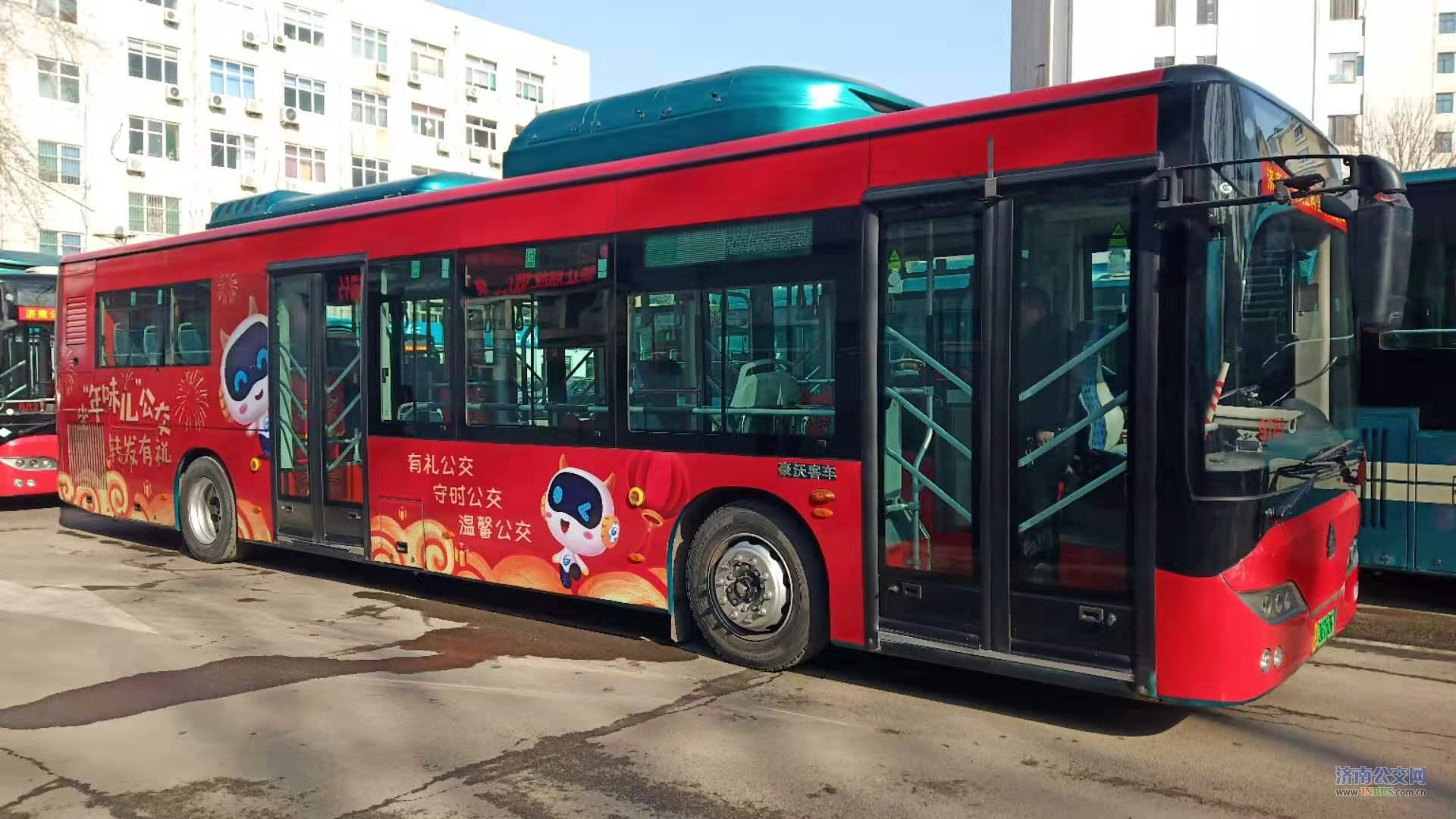 济南公交在不同主干道大运量的8条公交线路上,打造了8部“吉祥如意”主题车厢,为市民出行增加“年味儿”。