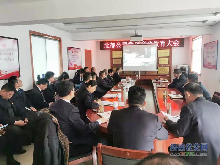 济南公交官网讯 1月21日上午,北部公司召开廉政警示教育大会。公司班子成员、部门负责人、车队长、管理人员等35名职工参加了会议。会议由公司经理陈伟超主持。