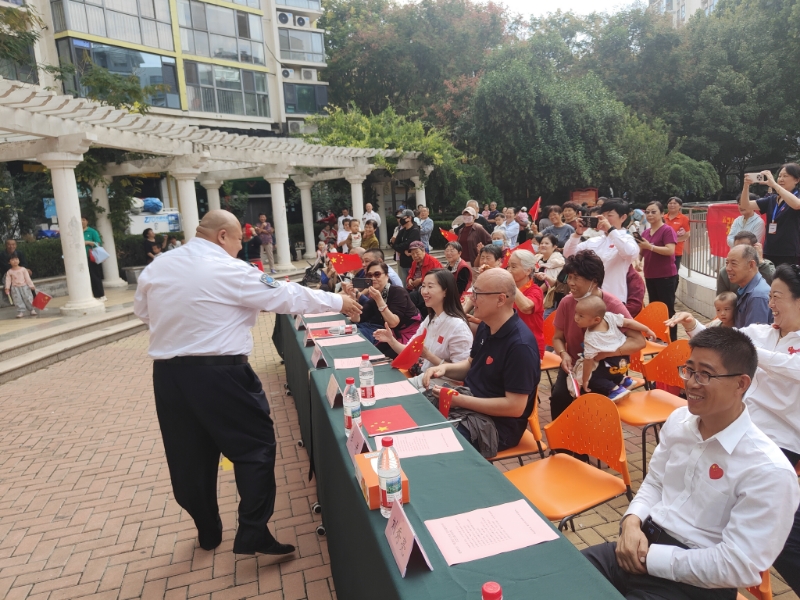活动的尾声,各参会单位和社区居民合唱《歌唱祖国》,表达对祖国母亲的深情热爱与祝福。活动在大家洪亮的歌声中圆满闭幕,全体参演单位人员和社区居民合影留念,留下一张充满爱国精神的全家福。