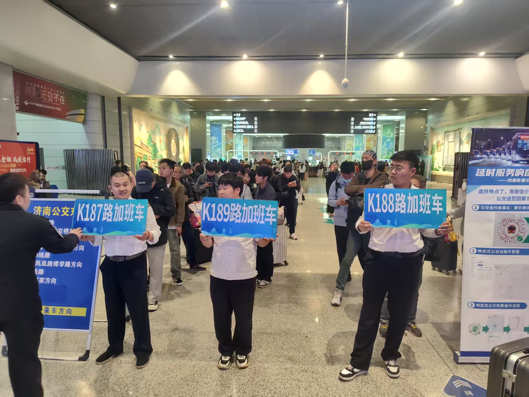 据济南公交工作人员介绍,济南公交提前根据各火车站列车到站情况,科学制定线路行车作业计划,实现公交发车班次与列车到站时刻精准对接,组织安排运力做好旅客疏运保障,强化高峰时段车辆调度,保证线路正常运行秩序。凌晨时分,各级管理人员、驾驶员在高铁出站口宣传、引导旅客乘坐公交出行,为旅客乘坐公交提供导乘指引、协助搬运行李等志愿服务,营造温馨和谐的出行环境。旅客们纷纷为济南公交暖心服务点赞。