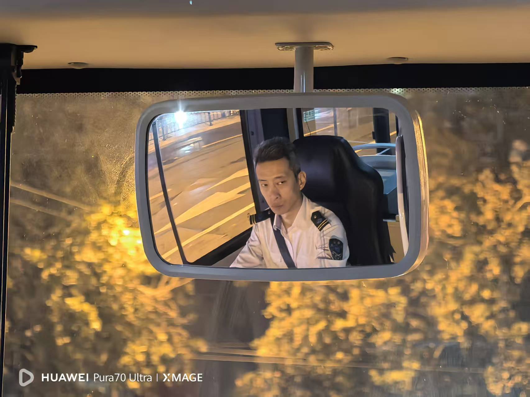 晚九点整,曹亮驾驶着K101路准时驶出场站缓缓东行,窗外是流光溢彩的泉城夜景,五龙潭的静谧、趵突泉的欢腾、泉城路商圈的火树银花……这些地标在国庆灯饰的装点下,格外壮丽。但对于曹亮来说,他的风景更多在车厢之内。