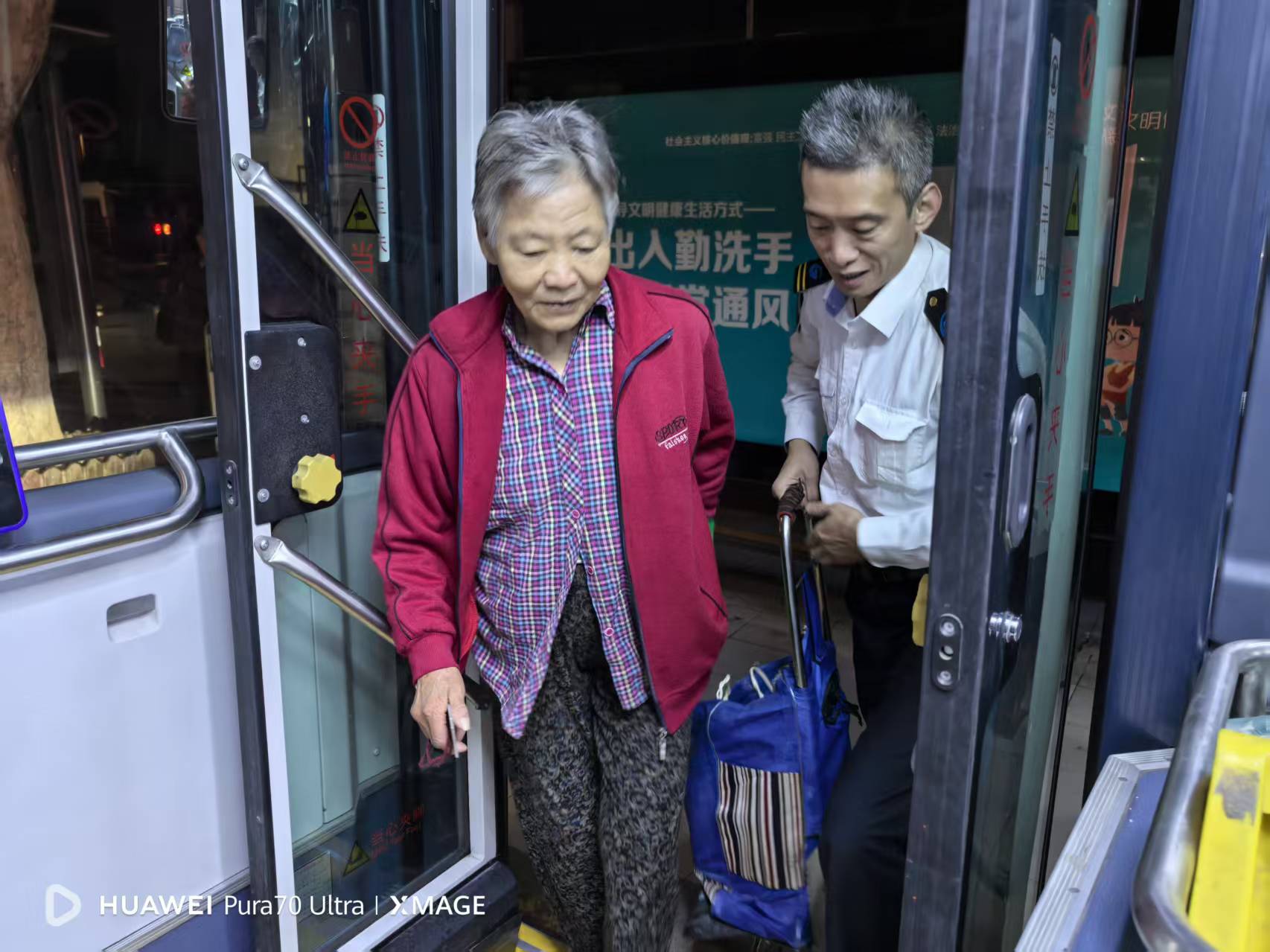 “师傅,国庆节还上班啊,辛苦啦!”一位乘车的老年人笑着打招呼。“不辛苦,你们能安全方便地出门,我们就高兴!”曹亮一边搀扶着老人一边笑着回应道。这简单的对话,成了节日夜里最温暖的问候。