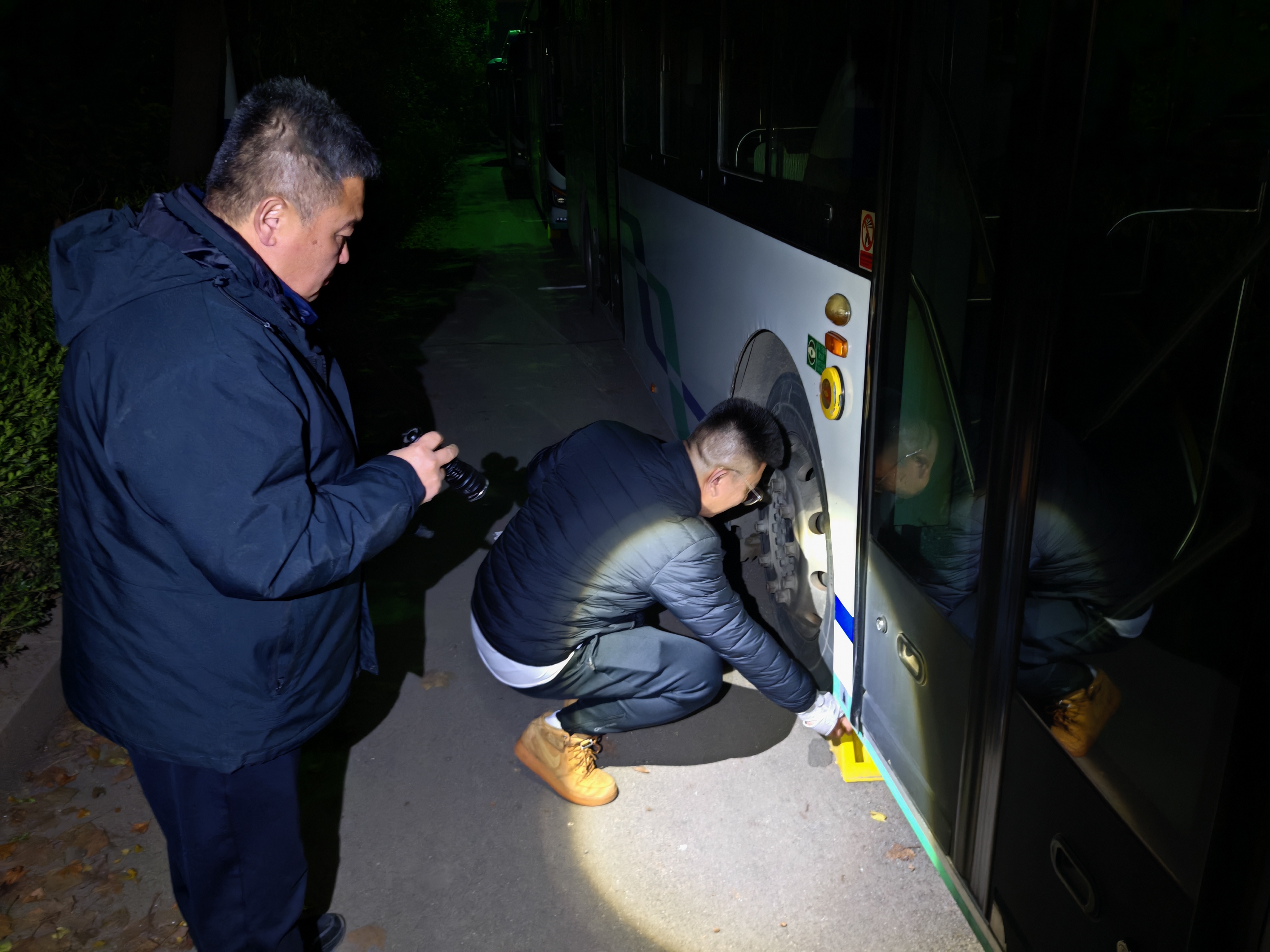 行动开展以来,公司聚焦道路交通安全管理重点,由副经理马晓兵带领全体安全管理人员,深入解放桥、经十路凤华路、春秀路等重点路口路段,组织开展营运安全晚低峰专项检查。检查人员紧盯行车规范,重点查处驾驶员强闯信号、过路口车速过快、不在状态驾驶、左转右转不停让、乱道行驶等不安全驾驶行为,现场提醒驾驶员时刻保持良好精神状态,规范操作、文明行车,切实守牢安全行车底线。同时,东部分公司统筹推进夜间安全监管工作,组织安全管理人员深入各场站及马路停车场,对夜间停车及消防安全进行全面检查。检查内容涵盖后十班运行、车辆规范停放、消防通道畅通、安全用电、消防器材完好性及收车后安全管理等方面。检查人员逐一查看、详细记录,现场督促整改发现的问题,并叮嘱车队严格落实安全检查制度,强化夜间安全巡查,确保各环节衔接有序、责任落实到位。