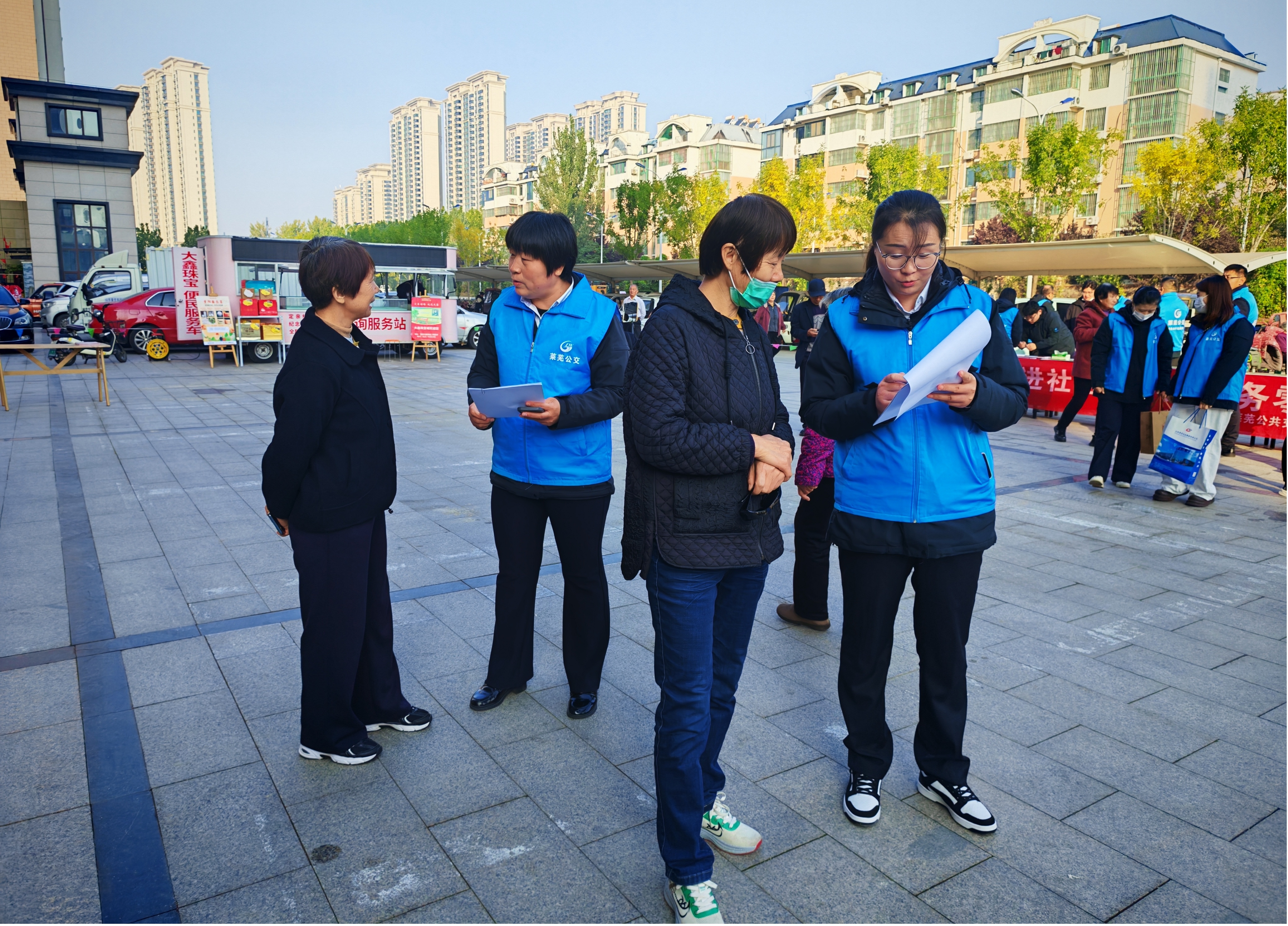 29日上午,公交出行管家到安泰华府社区开展“出行管家进社区”服务活动,并同步参与“重阳安康季 敬老服务行”重阳节公益集市活动。活动期间,大家不仅现场提供老年卡年审、普通卡充值等服务,还通过向来往居民发放《倡议书》、邀请填写满意度调查问卷等方式,倡导文明出行,收集意见建议,及时解答疑惑,并引导居民扫码关注“莱芜公交”微信公众号、下载369出行APP等,实现公交服务“零距离”,收获了社区居民的一致好评。