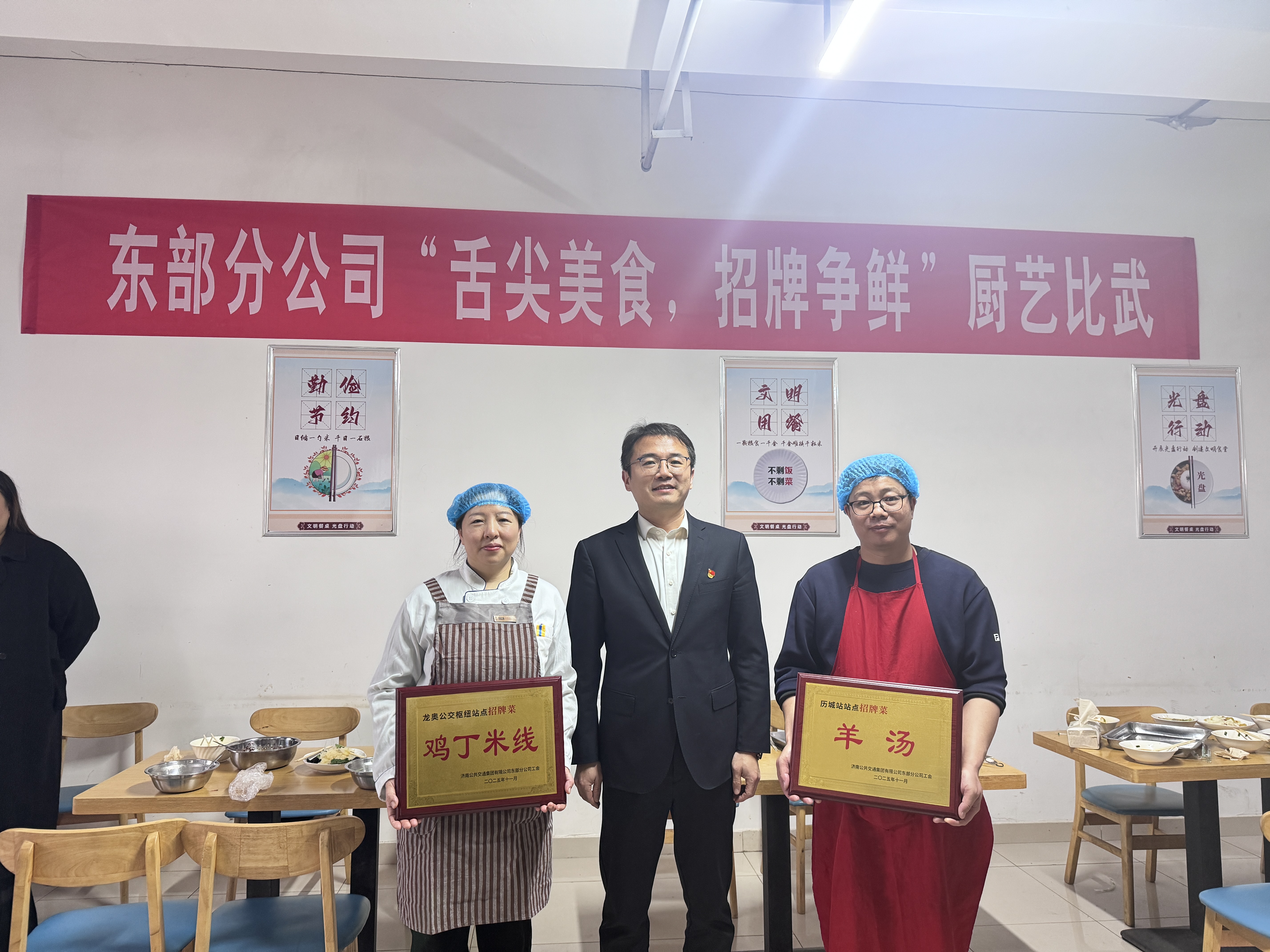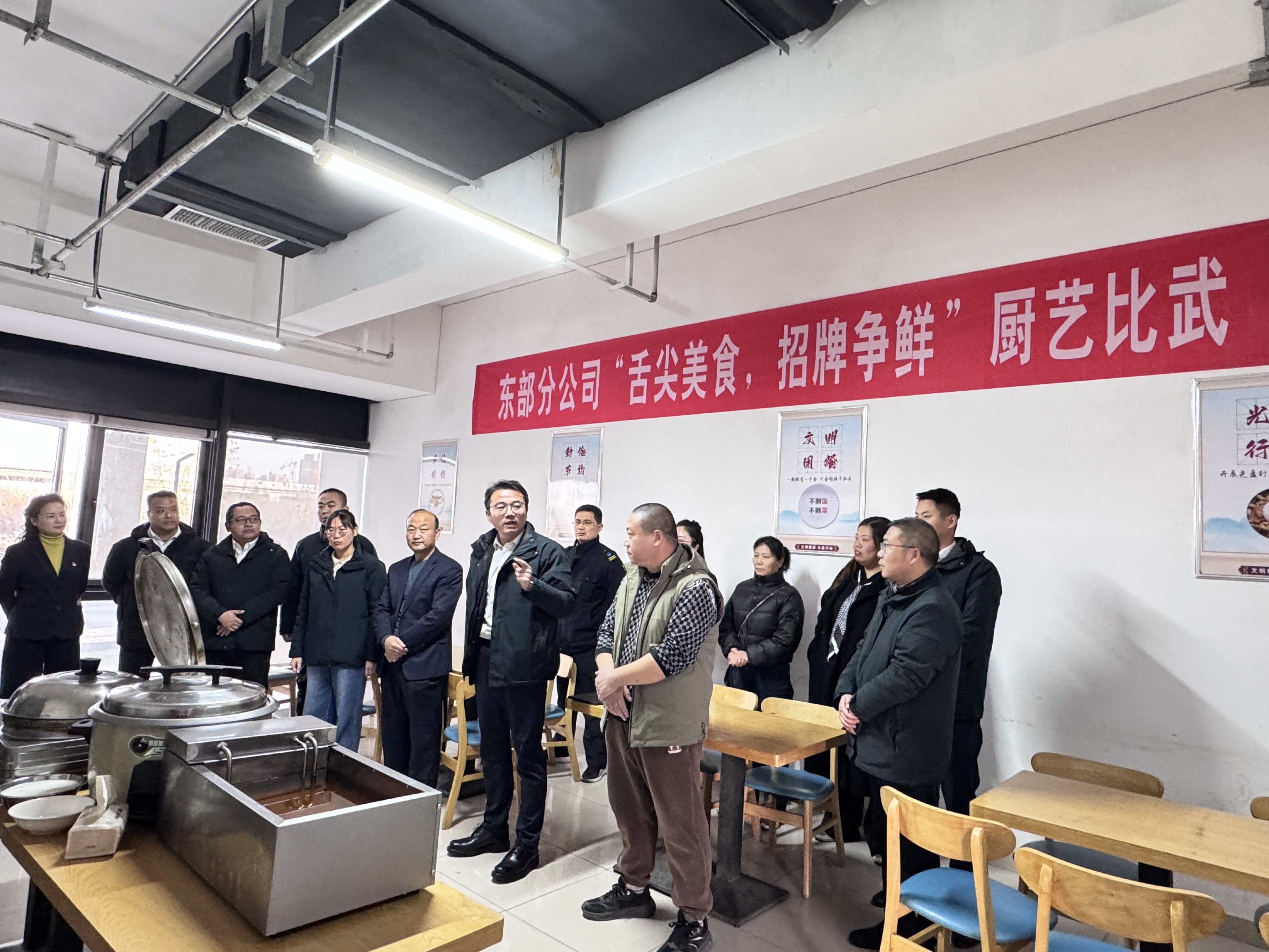 济南公交官网讯 为进一步提升车队后勤服务保障水平,丰富冬运期间一线餐饮供给种类,切实增强员工幸福感与归属感。今日下午,东部分公司在历城站公交站点举办“舌尖美食,招牌争先”厨艺比武活动。公司工会主席杨阳、各车队分会主席及各站点食堂工作人员共计30余人参加活动。