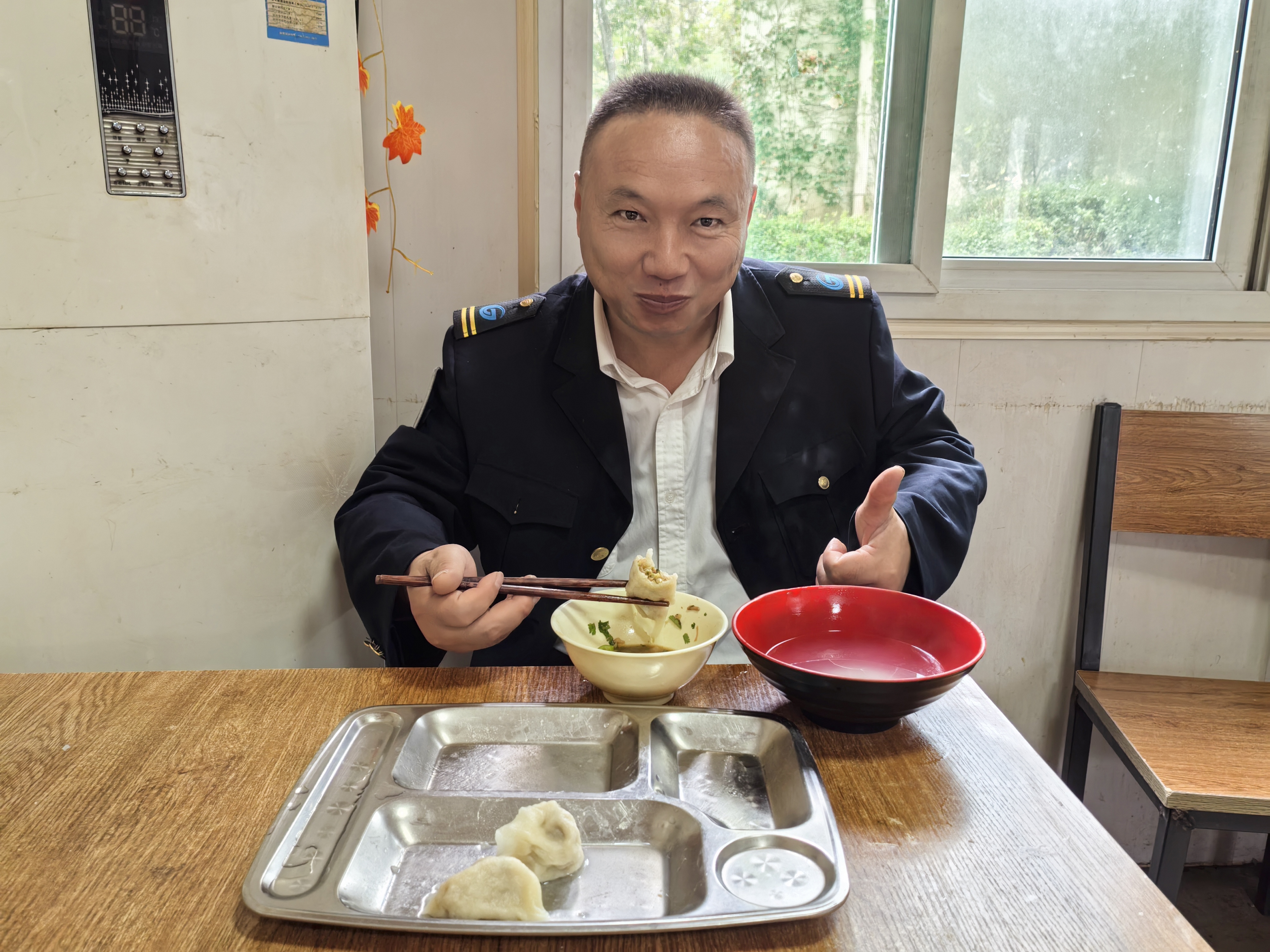 刚刚下班的驾驶员李涛、赵森、刘凯、贾义平、丁淑朋、楚焕虎手里端着刚出锅的饺子,脸上洋溢着满足的笑容。他们纷纷称赞:“这饺子真不错!皮儿薄,馅儿大,吃起来特别香,比外面买的强多了!”不少职工表示,食堂推出这样实惠又美味的主食,吃出了家里的味道,让大家工作起来更有干劲,工会真是办了一件实实在在的好事。